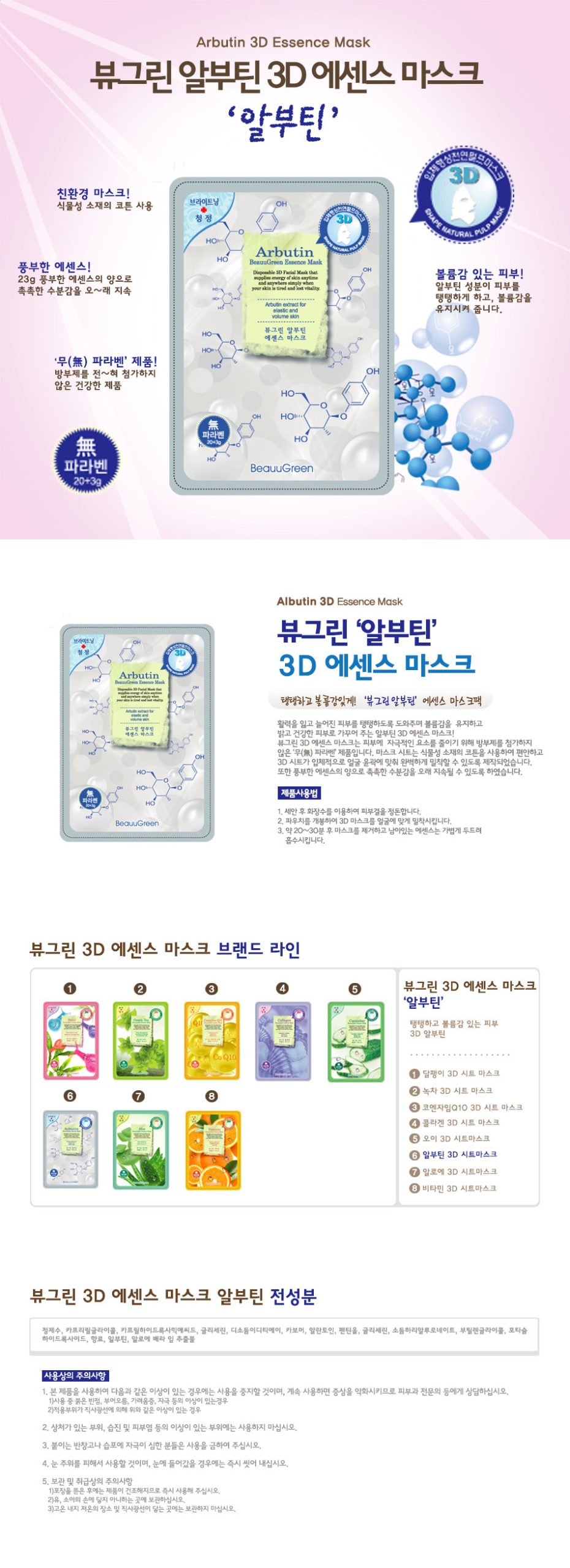 Beauugreen Arbutin 3D Essence Mask is specially formulated for who struggle with dull skin, hyperpigmentation, and dark spots. Enriched with Arbutin, Niacinamide, Aloe Extract, and Sodium Hyaluronate, this mask helps brighten skin tone, reduce dark spots, and improve hydration. Its unique 3D design ensures full coverage, allowing the essence to penetrate deeply into every contour for naturally radiant and youthful-looking skin.