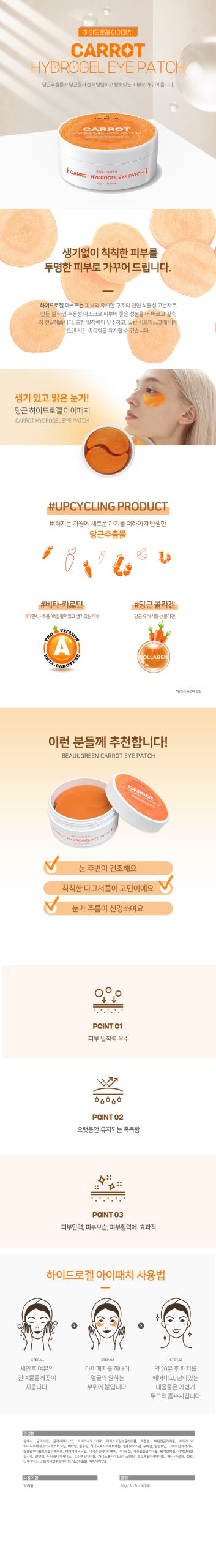 Beauugreen Carrot Hydrogel Eye Patch (Jar/60pcs) is a natural under-eye treatment. It targets dullness, puffiness, and early signs of aging around the eyes.