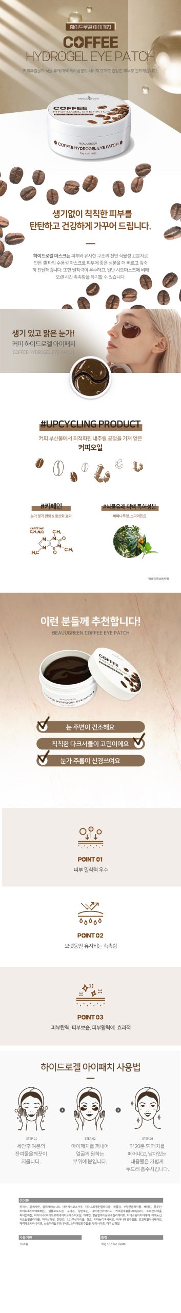 Beauugreen Coffee Hydrogel Eye Patch (Jar/60pcs) is a refreshing eye treatment designed targets puffiness, tired-looking eyes, and dark circles caused by lack of rest or stress.