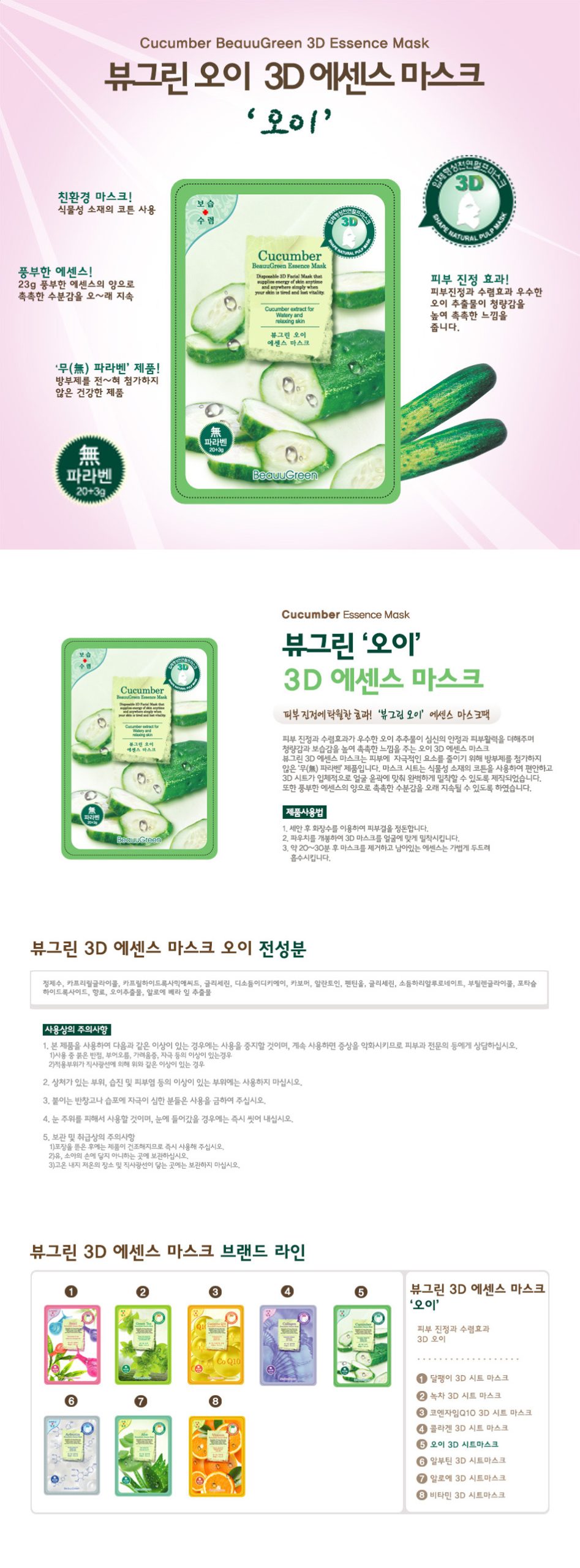 Beauugreen Cucumber 3D Essence Mask Refresh and soothe tired, dry, and acne-prone skin with the Cucumber Cooling Sheet Mask. Infused with natural Cucumber Extract, Aloe, Sodium Hyaluronate, and Panthenol, this hydrating mask delivers a cooling sensation while calming irritation, moisturizing, and brightening your skin. Specially designed for who want fresh, supple, and glowing skin, the 3D full coverage design ensures every part of your face gets maximum essence absorption.