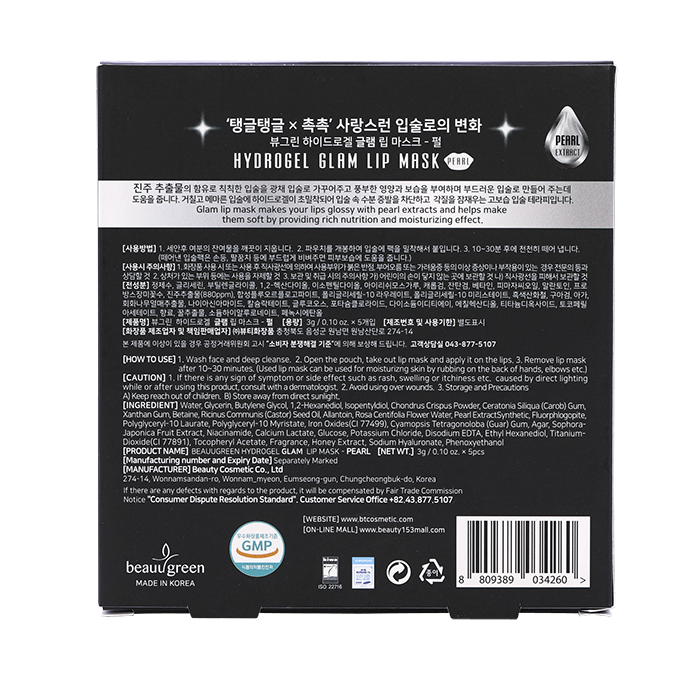 BEAUUGREEN Hydrogel Glam Lip Mask Pearl Premium brightening lip mask treatment designed for targeting dark/uneven lips seeking brightening and rosy effects. Formulated with powerful hero ingredients including Pearl Extract for luminous brightening, Niacinamide for even tone, Sodium Hyaluronate for deep hydration, and Vitamin E for antioxidant protection. Enhanced with luxurious natural ingredients featuring nourishing Honey Extract, moisturizing Castor Seed Oil, and soothing Rosa Centifolia Flower Water. This innovative brightening lip treatment effectively lightens dark pigmentation while delivering intensive moisture and repair. Easy-to-use formula perfect for achieving radiant, even-toned lips with professional results at home.